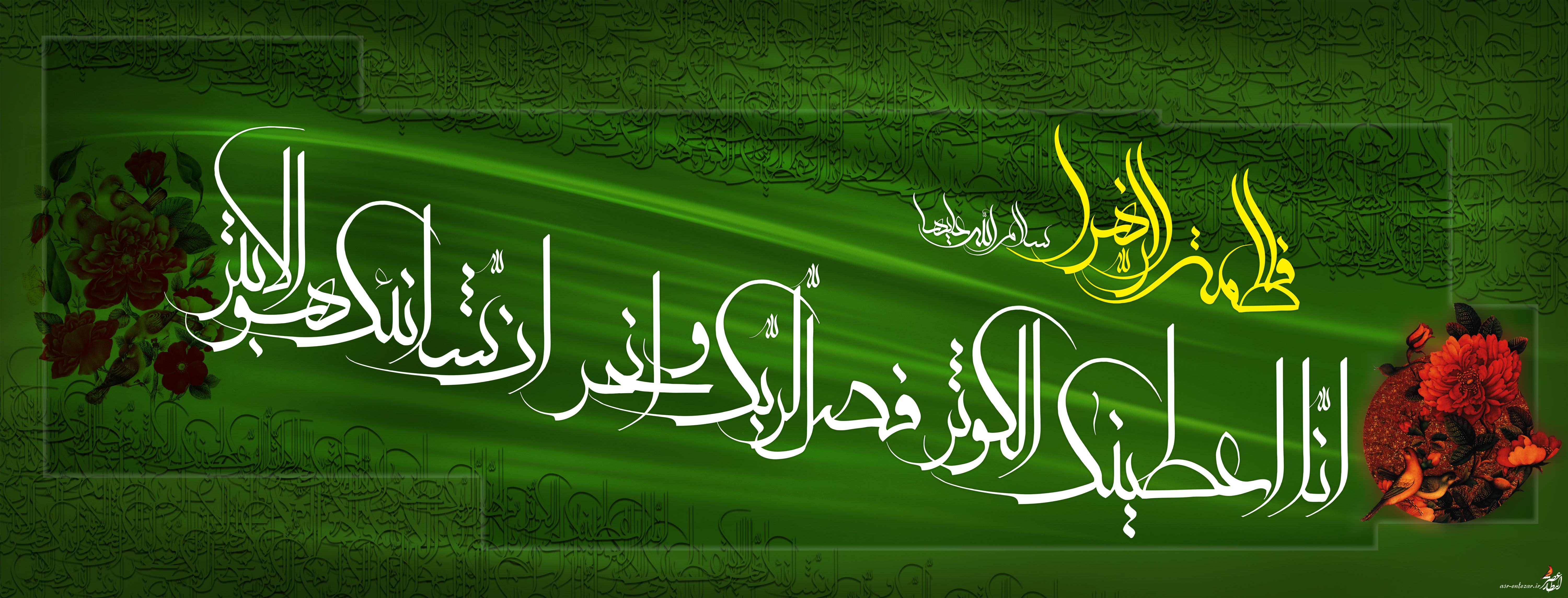 تصویری که امروز خدمت شما گرامیان تقدیم می کنم طرحی است با خطاطی سوره کوثر و همچنین نام مبارک حضرت فاطمه زهرا (سلام الله علیها) که با خط معلی نگارش شده.