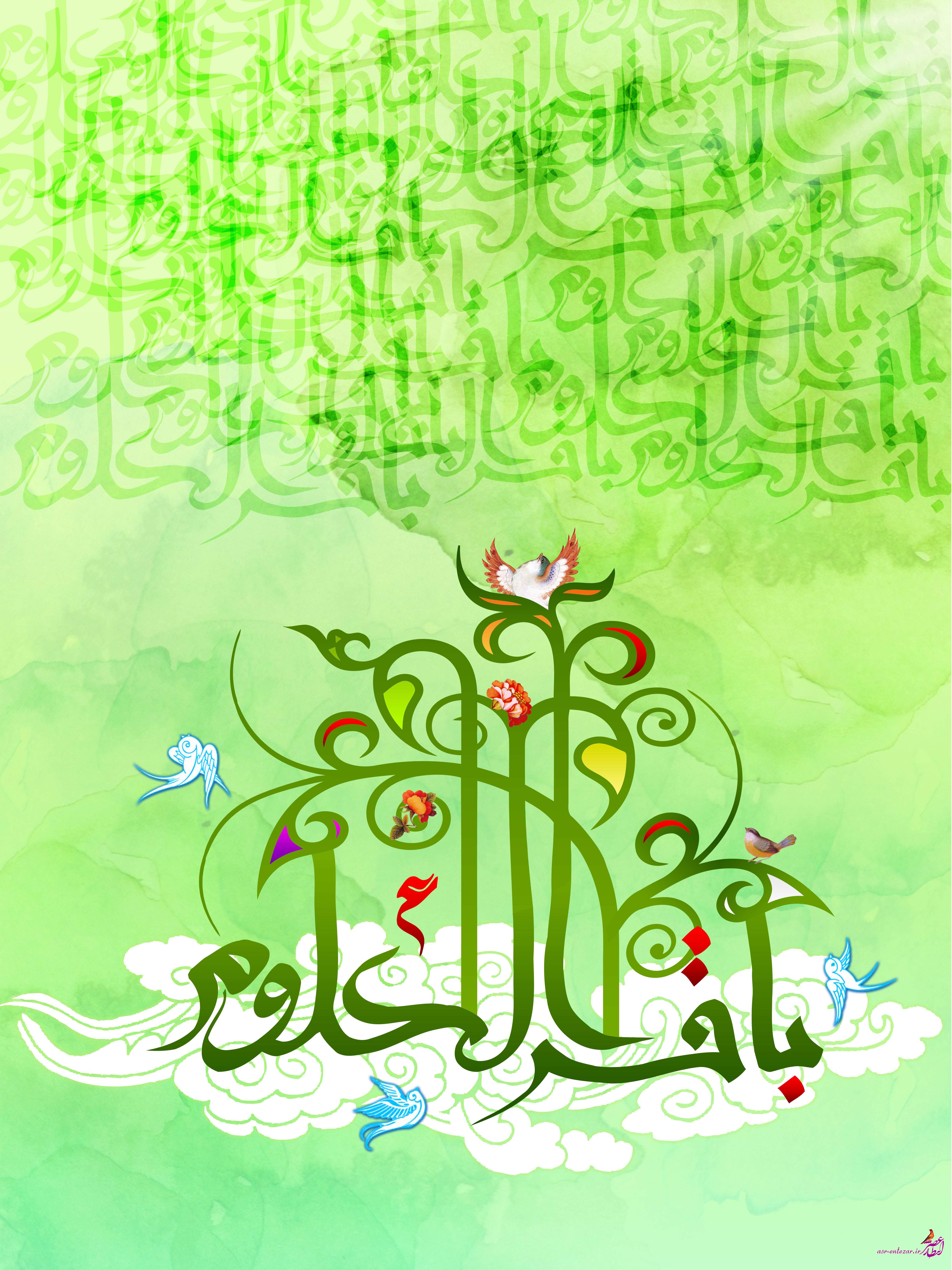 برای طراحی این تصویر از خطاطی نام مبارک باقر العلوم (علیه السلام) استفاده کردم. تصویر رو در دو اندازه متفاوت قرار دادم که یکی عمودی و دیگری افقی است.