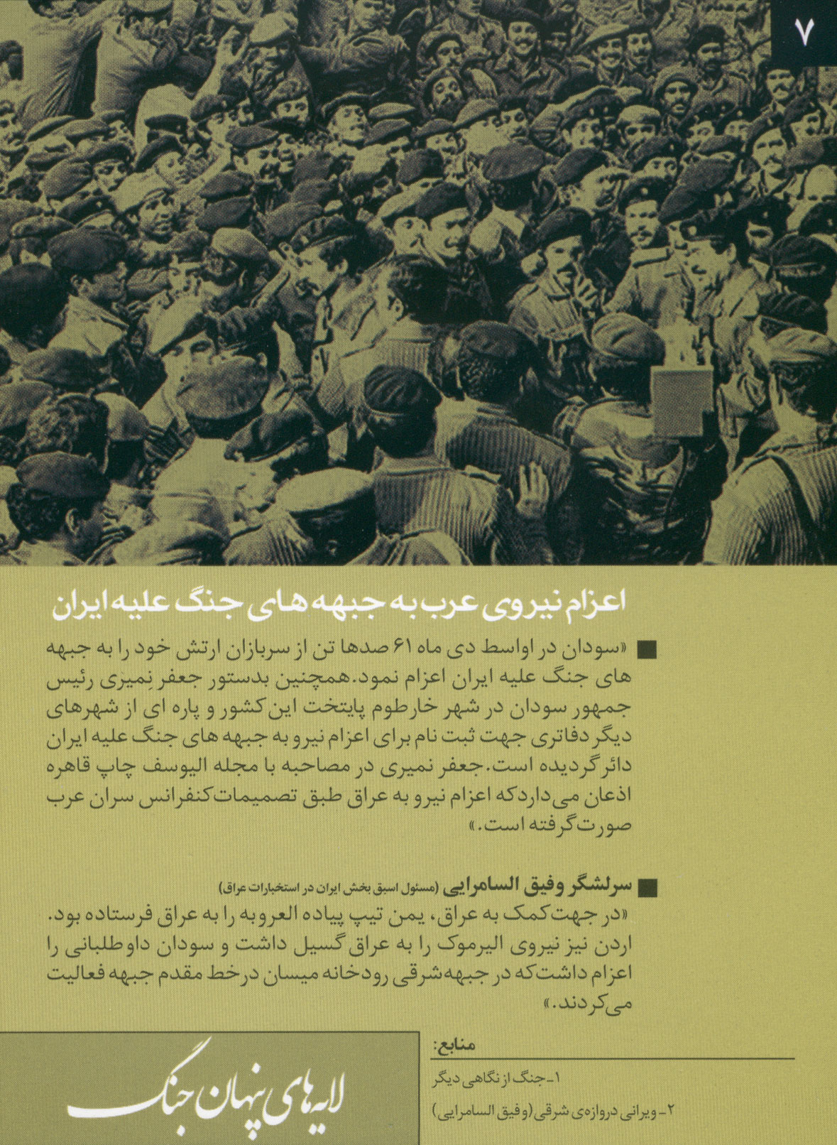 سودان در اواسط دی ماه ۶۱ صد ها تن از سربازان ارتش خود را به جبهه های جنگ علیه ایران اعزام نمود. همچنین به دستور جعفر نمیری رئیس جمهور سودان در شهر خارطوم پایتخت این کشور و پاره ای از شهرهای دیگر ، دفاتری جهت ثبت نام برای اعزام نیرو به جبهه های جنگ علیه ایران دائر گردیده است. جعفر نمیری در مصاحبه با مجله الیوسف چاپ قاهره اذعان میدارد که اعزام نیرو به عراق طبق تصمیمات کنفرانس سران عرب صورت گرفته است.