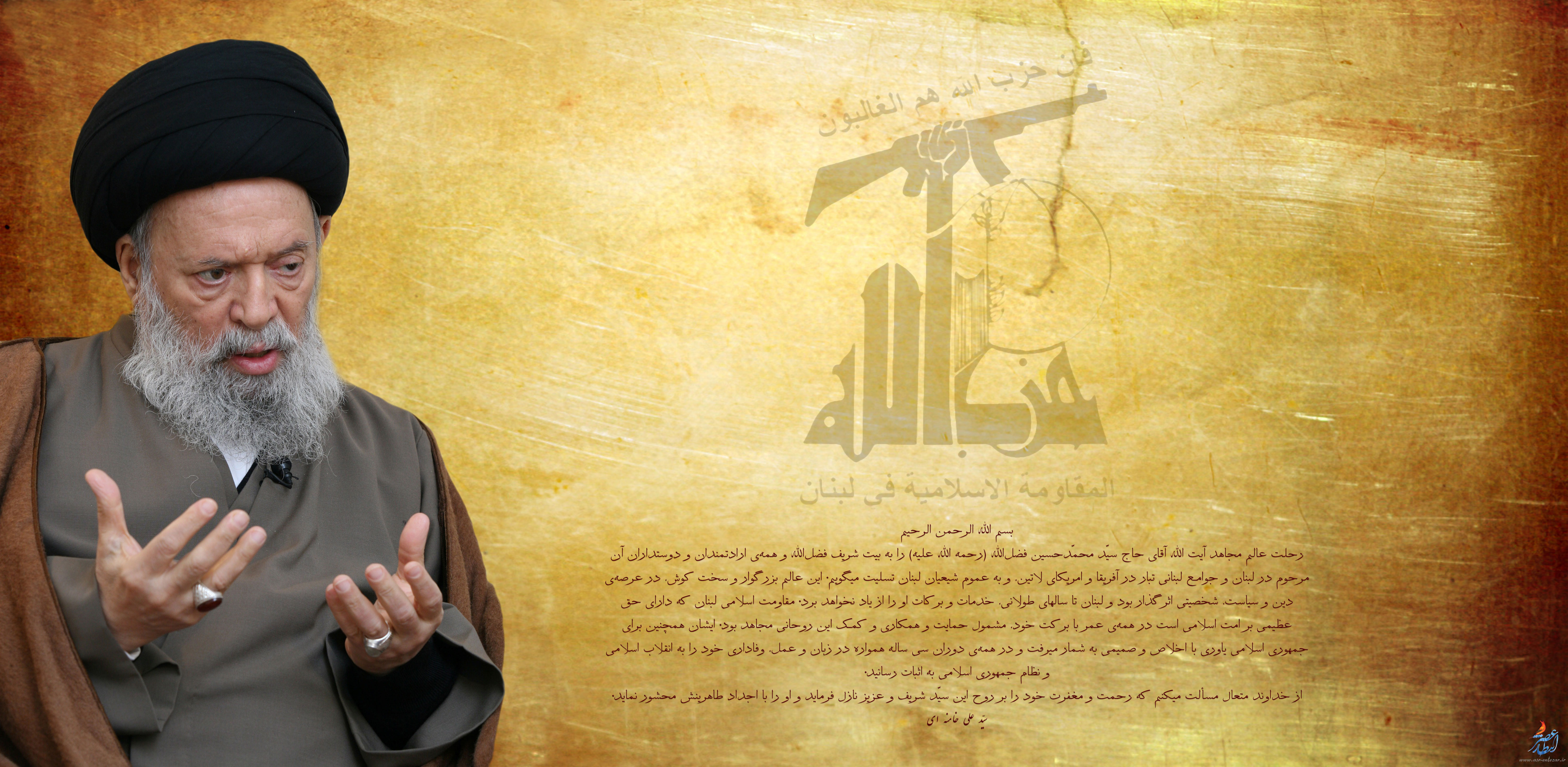 درگذشت آیت الله حاج سیّد محمّدحسین فضلالله را به تمام شیعیان جهان تسلیت عرض می کنیم.