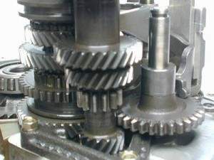 The gears that make up the forward gear ratios are all helical gears. The teeth on helical gears are cut at an angle to the face of the gear. When two teeth on a helical gear system engage, the contact starts at one end of the tooth and gradually spreads as the gears rotate, until the two teeth are in full engagement. This gradual engagement makes helical gears operate much more smoothly and quietly than spur gears. Also, because of the angle of the gear teeth, more teeth are in engagement at any one time. This spreads the load out more and reduces stresses.