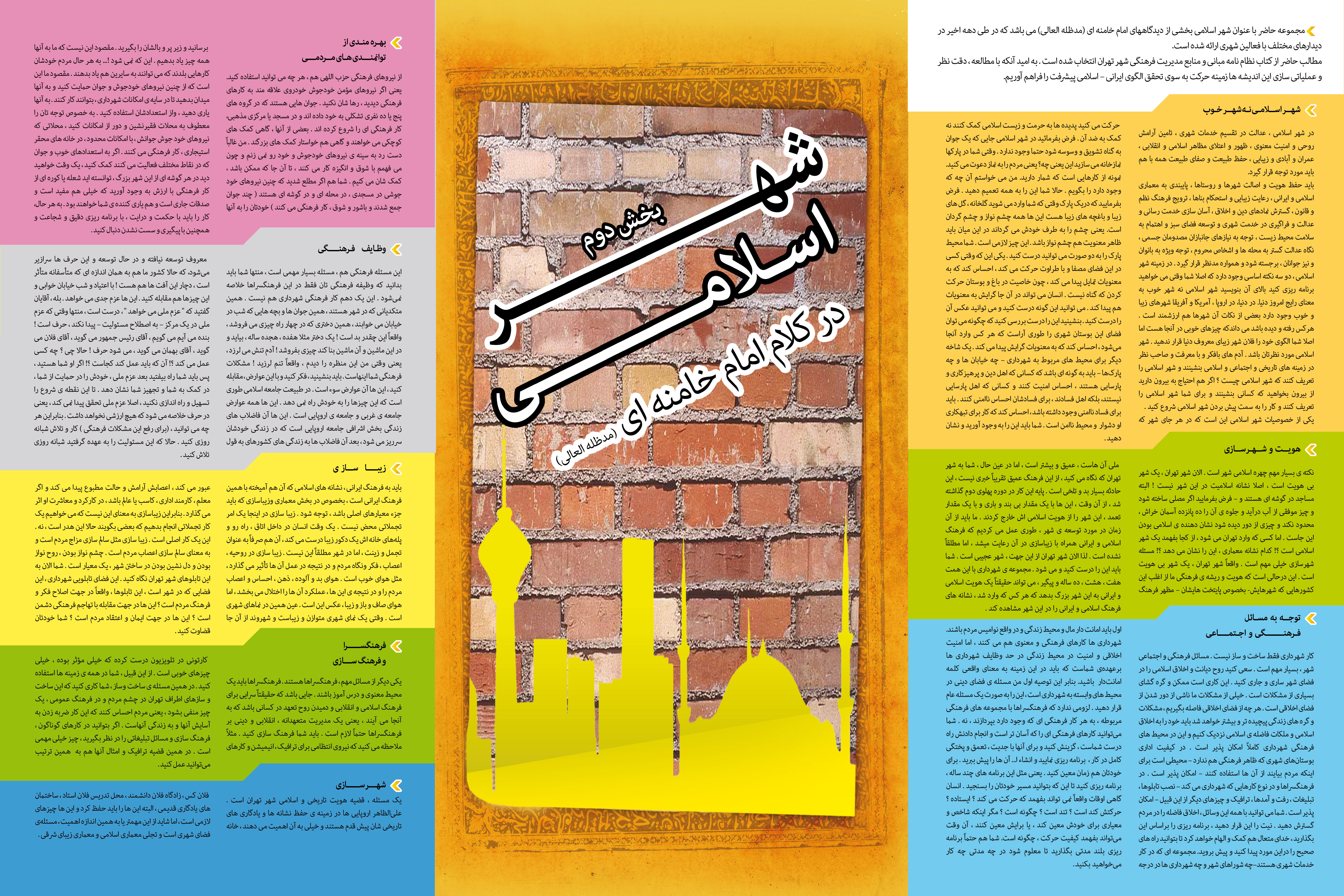 این بروشو شامل دو بخش بوده که بخش نخست آن به بررسی شاخصه های رئیس جمهور اصلح در بیانات امام خامنه ای (مدظله العالی) و بخش دوم به شاخصه های شهر اسلامی در بیانات ایشان پرداخته که امیدوارم این بروشور بتواند نقش بسزایی در انتخاب اصلح در انتخابات سال حماسه سیاسی و حماسه اقتصادی ایفا نماید.