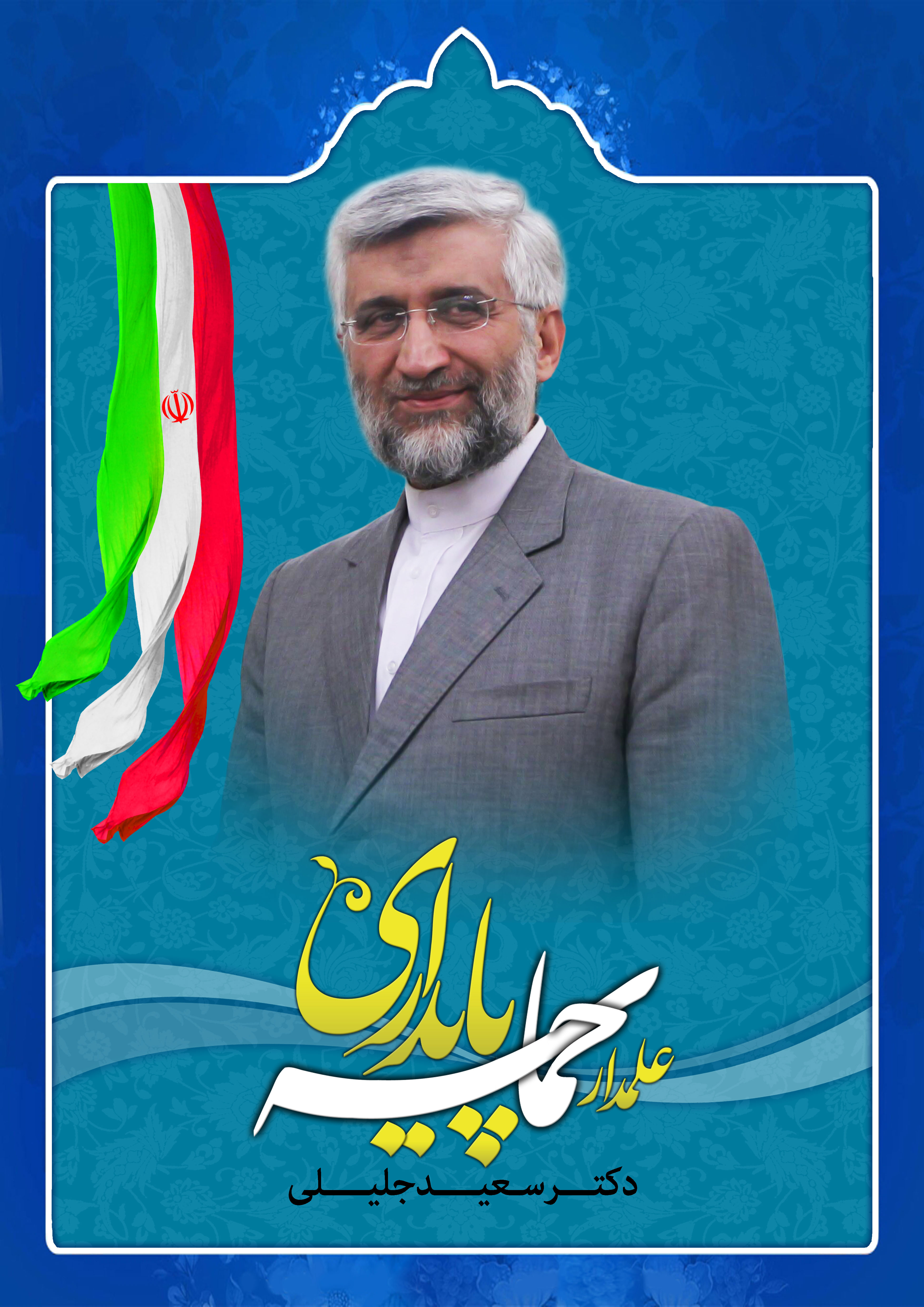 برای این پوستر از شعار «علمدار حماسه پایداری» استفاده کردم که به راستی برازنده دکتر جلیلی است.