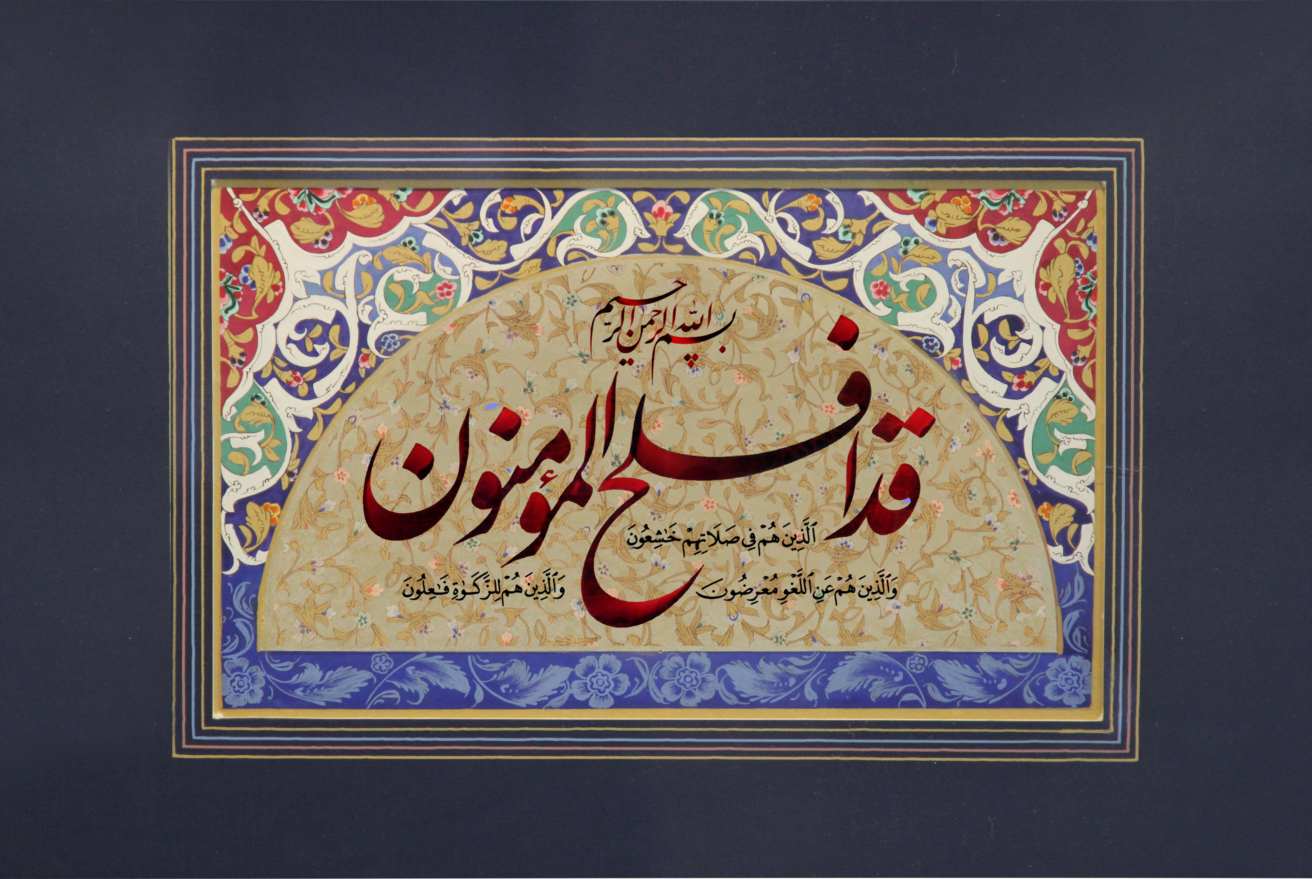 به درخواست این دوست عزیز آیه «قد افلح المومنون» رو بدون وکتور سازی و با خط نستعلیق خطاطی و با تذهیبی زیبا تزئین کردم که امیدوارم این تصویر زینت بخش منازل شما گرامیان باشد. ان شاء الله تعالی…