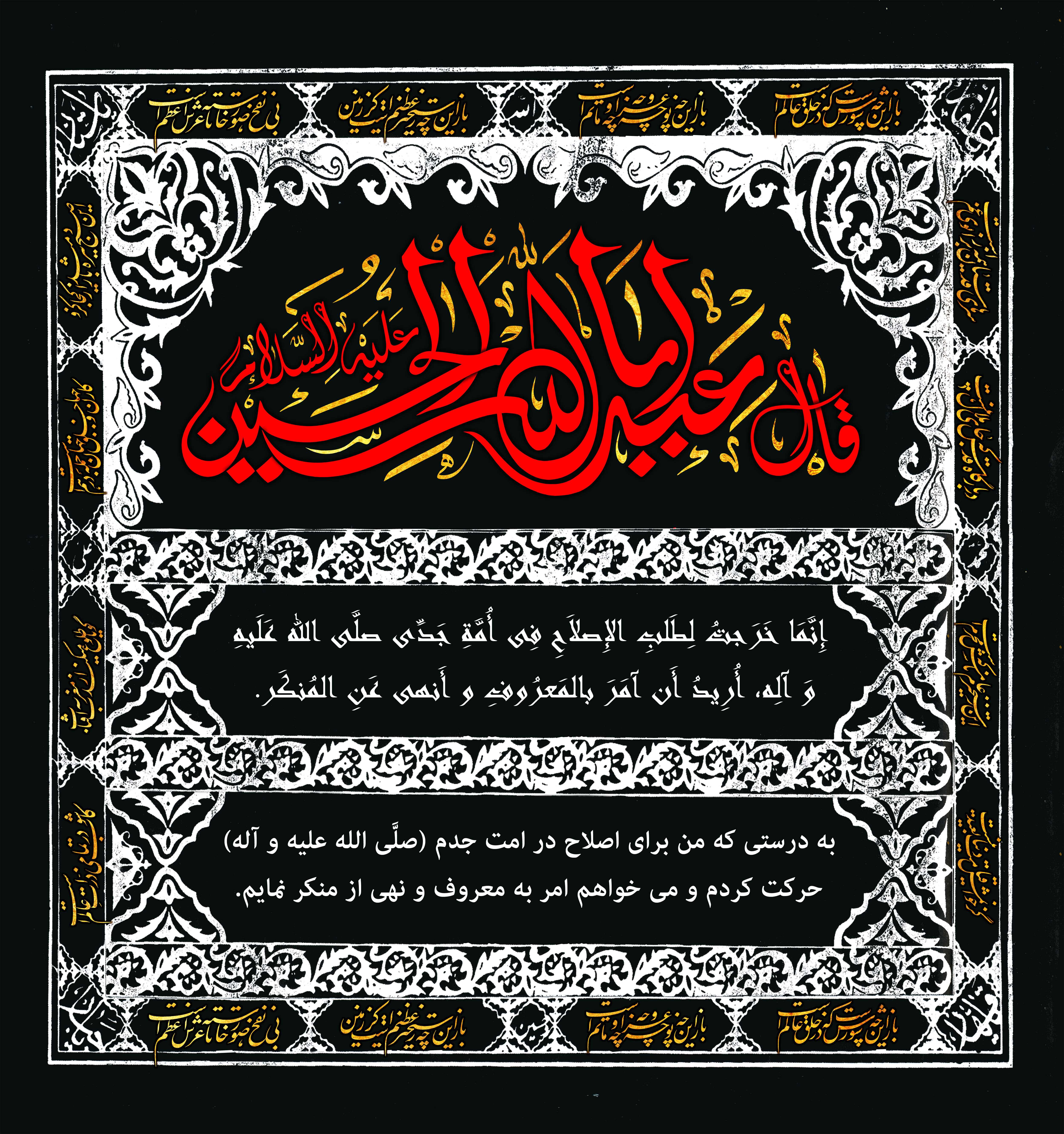 امام حسین (علیه السلام) فرمودند : و أَنِّی لَم أَخرُج أَشِراً و لَا بَطراً و لَا مُفسِداً و لَا ظَالِماً و إِنَّمَا خَرَجتُ لِطَلبِ الإِصلاَحِ فِی أُمَّةِ جَدِّی صلَّی الله علیه و آله، أُرِیدُ أَن آمَرَ بالمَعرُوفِ و أَنهی عَنِ المُنكَر و أسِیرُ بِسِیرةِ جَدِّی و أبی علی بن أبی طالب علیه السلام .
