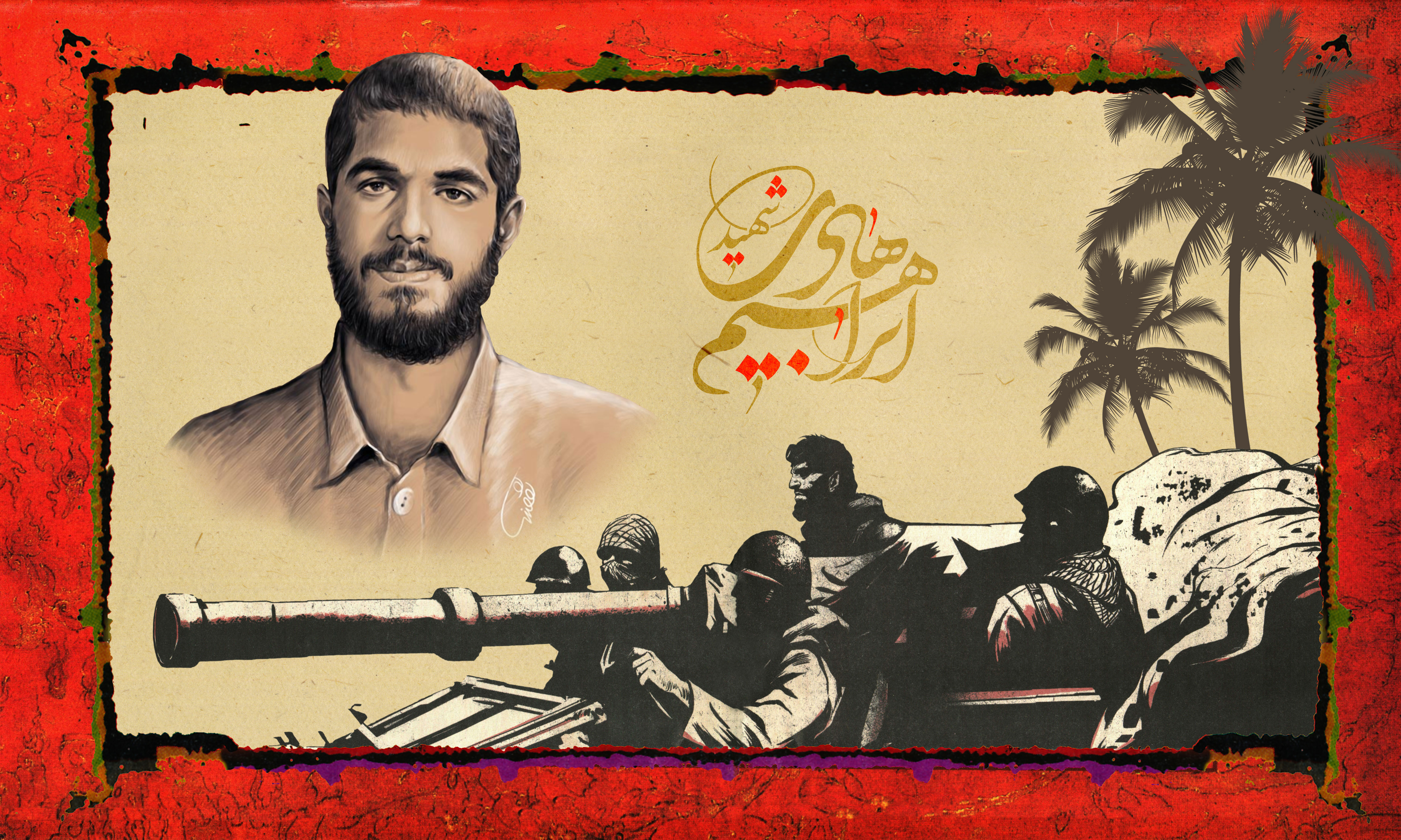 این تصویر مزین است به عکس و نام زیبای شهید ابراهیم هادی که تصویرسازی چهره این شهید والامقام با دستان توانمند عباس گودرزی انجام شده و حقیر خطاطی و گرافیک اثر رو انجام دادم که امیدوارم از این تصویر بهترین بهره رو ببرید. ان شاء الله تعالی…