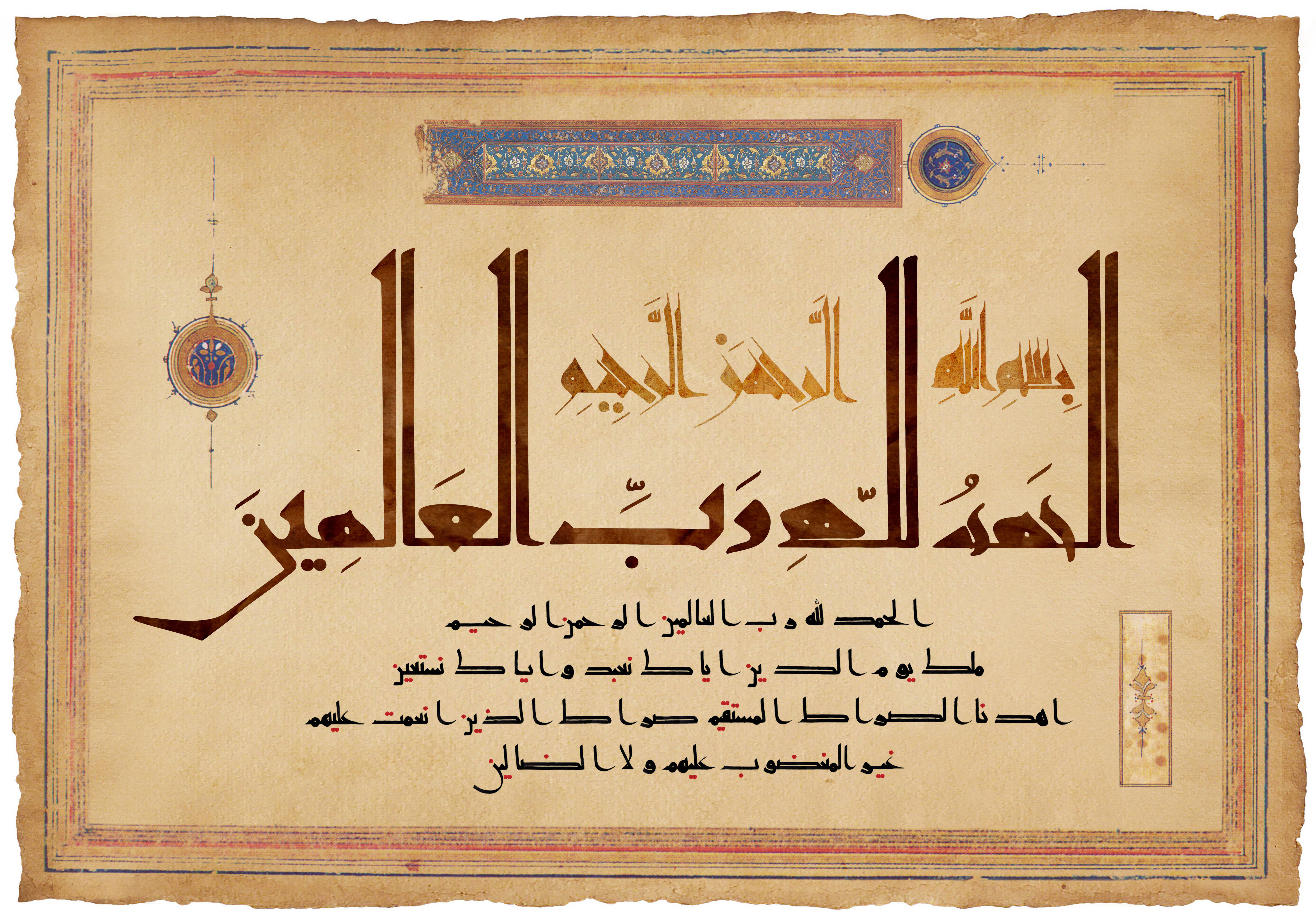 تصویر قرآنی امروز اختصاص دارد به سوره مبارکه حمد (الفاتحة) که با خط کوفی خطاطی شده است.
