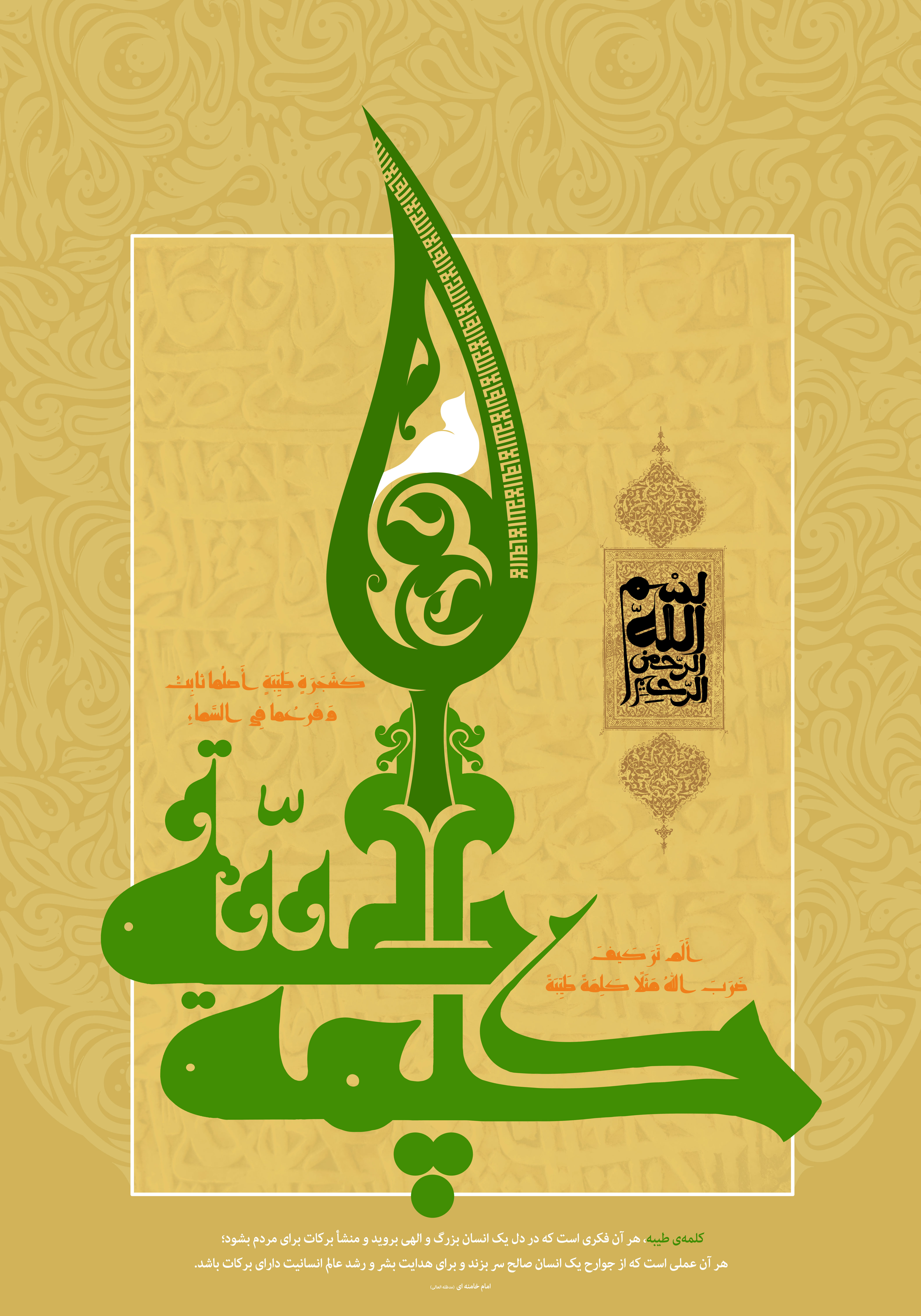 طبق فرمایشات حضرت آقا «کلمهی طیبه، هر آن فکری است که در دل یک انسان بزرگ و الهی بروید و منشأ برکات برای مردم بشود؛ هر آن عملی است که از جوارح یک انسان صالح سر بزند و برای هدایت بشر و رشد عالم انسانیت دارای برکات باشد. همچنین کلمهی طیبه، آن انسانی است که این اندیشهی نیکو یا این عمل صالح در وجود او متحقق شده است و در او بروز و نمود پیدا میکند… کلمهی طیبه، هم قول است، هم آن قائل است؛ هم فکر است، هم آن چیزی است که زائیدهی از آن فکر است؛ هم آن شخصیت انسانیِ برگزیدهای است که این فکر و عمل به او قائم است.» (بیانات در مراسم هیجدهمین سالگرد ارتحال حضرت امام خمینی(ره) – ۱۳۸۶/۰۳/۱۴)