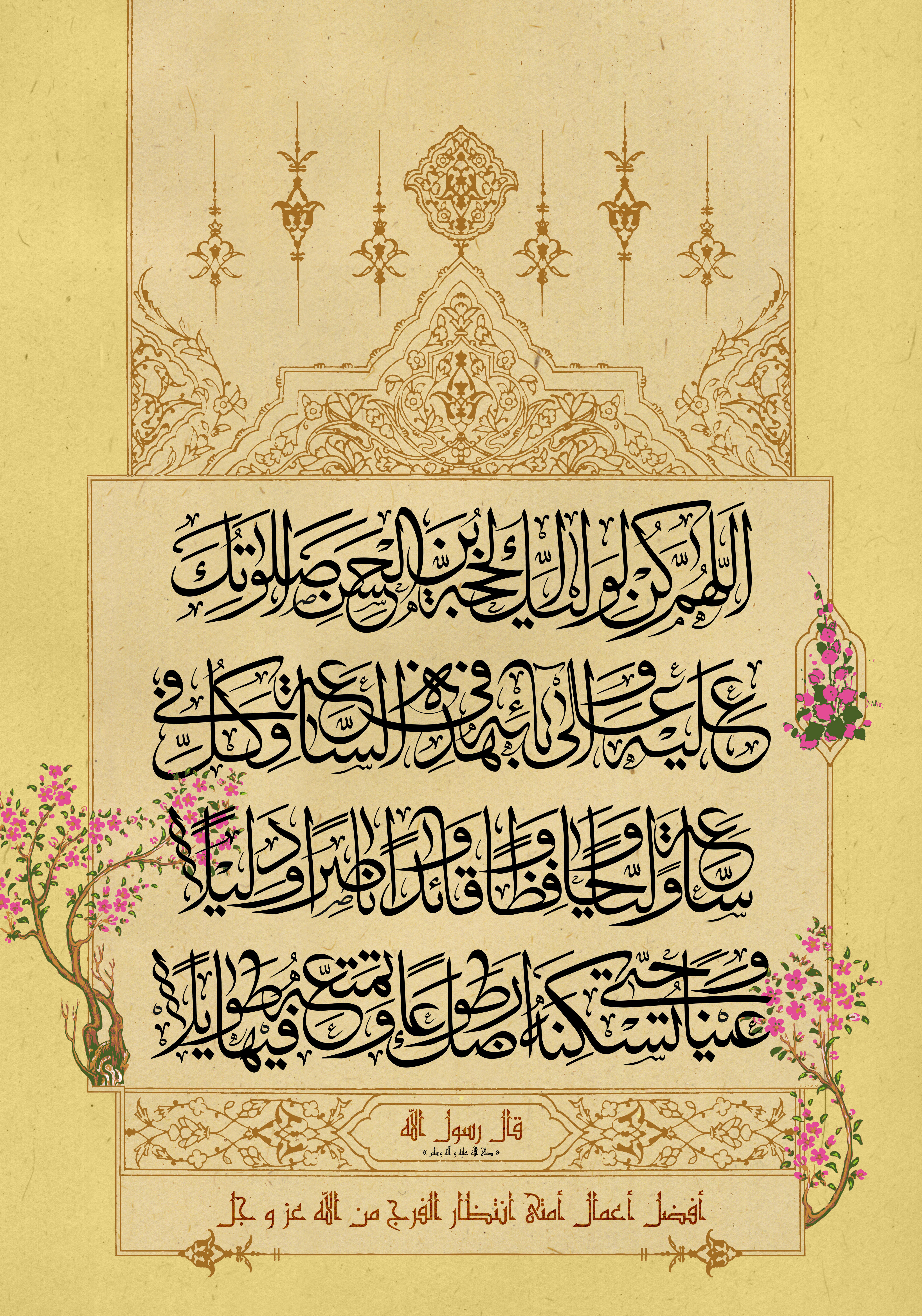 تصویر دیگری که امروز خدمت شما تقدیم می کنم مزین است به دعای سلامتی امام زمان (عجل الله تعالی فرجه الشریف) که بین عوام به دعای فرج معروف است.