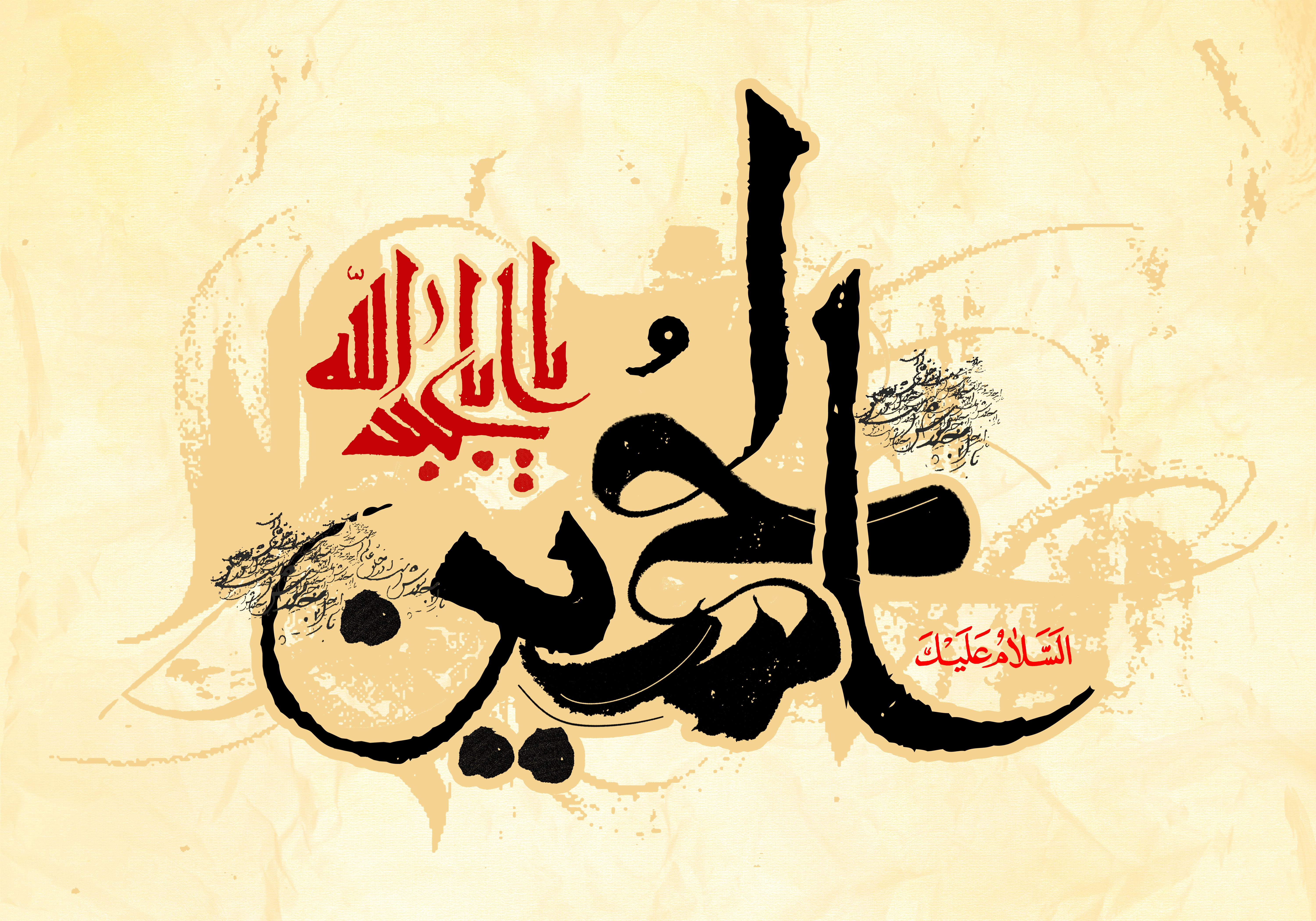 این تصویر مزین است به عبارت السلام علیک یا ابا عبد الله الحسین که با خط کوفی خطاطی شده است.