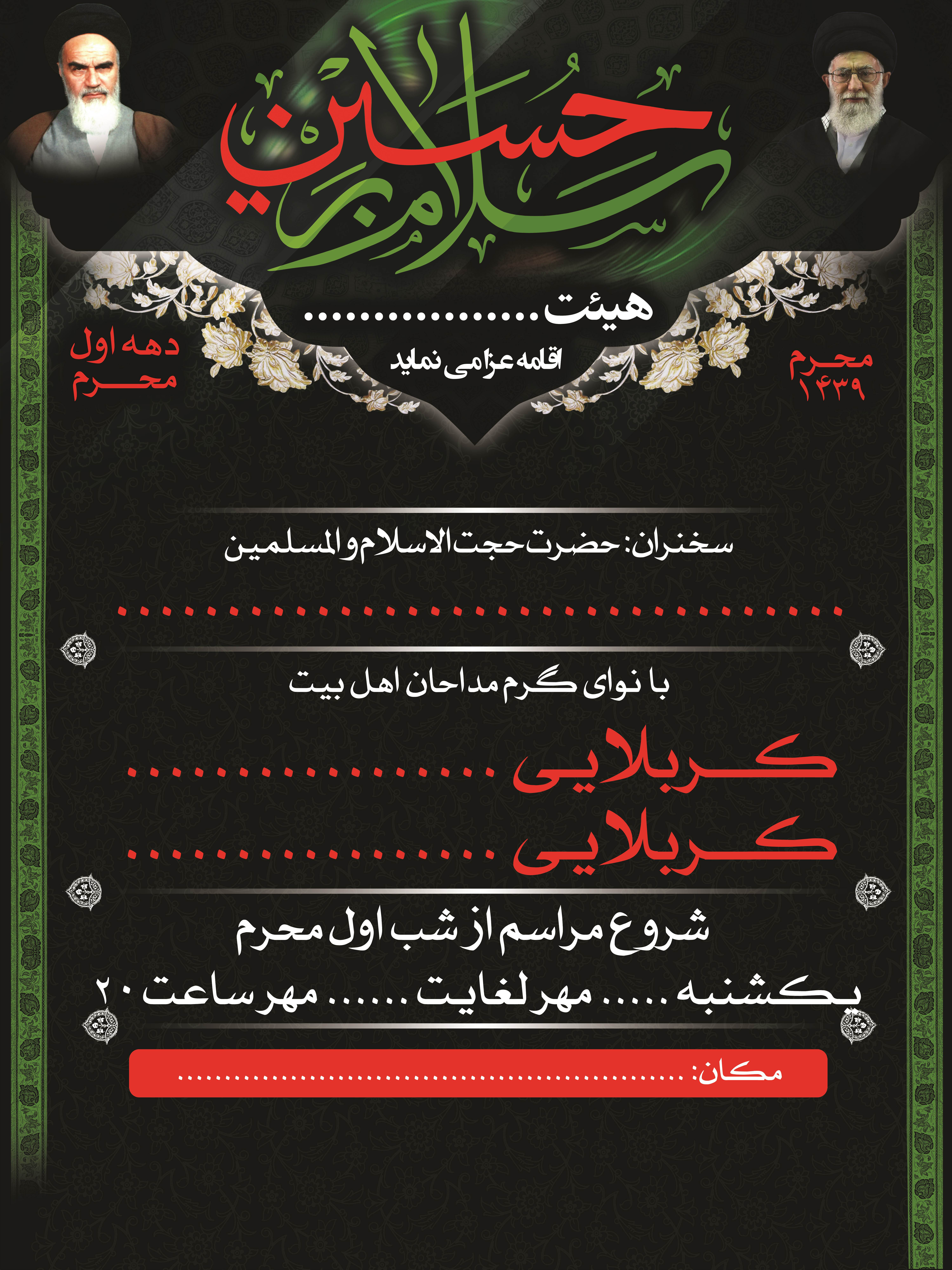 برای اطلاع رسانی مراسم هیات در ماه محرم بنری طراحی کردیم که این تصویر رو خدمت شما تقدیم می کنم.