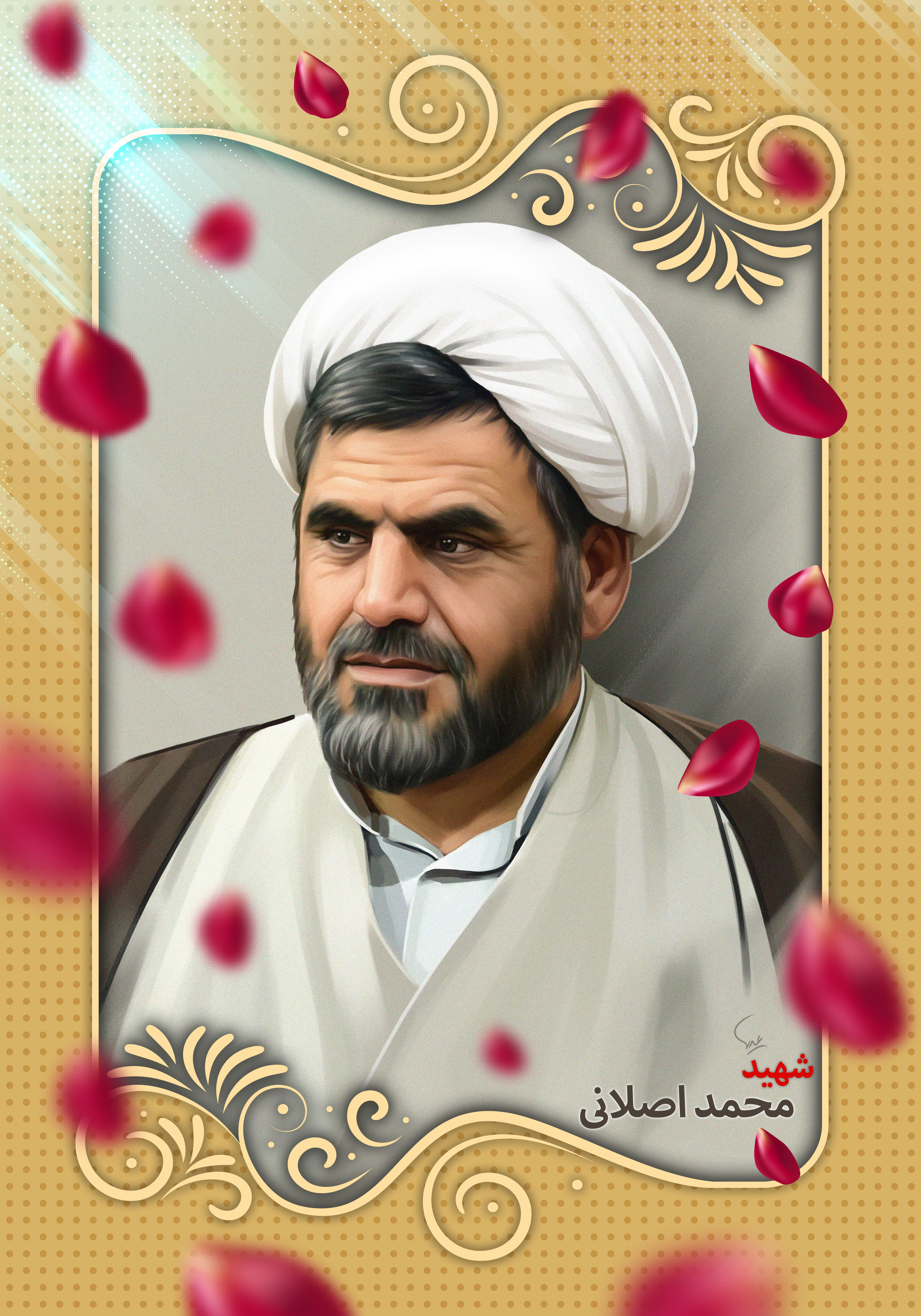 نقاشی چهره شهید محمد اصلانی توسط جناب آقای علی عسکری اجرا شده است.