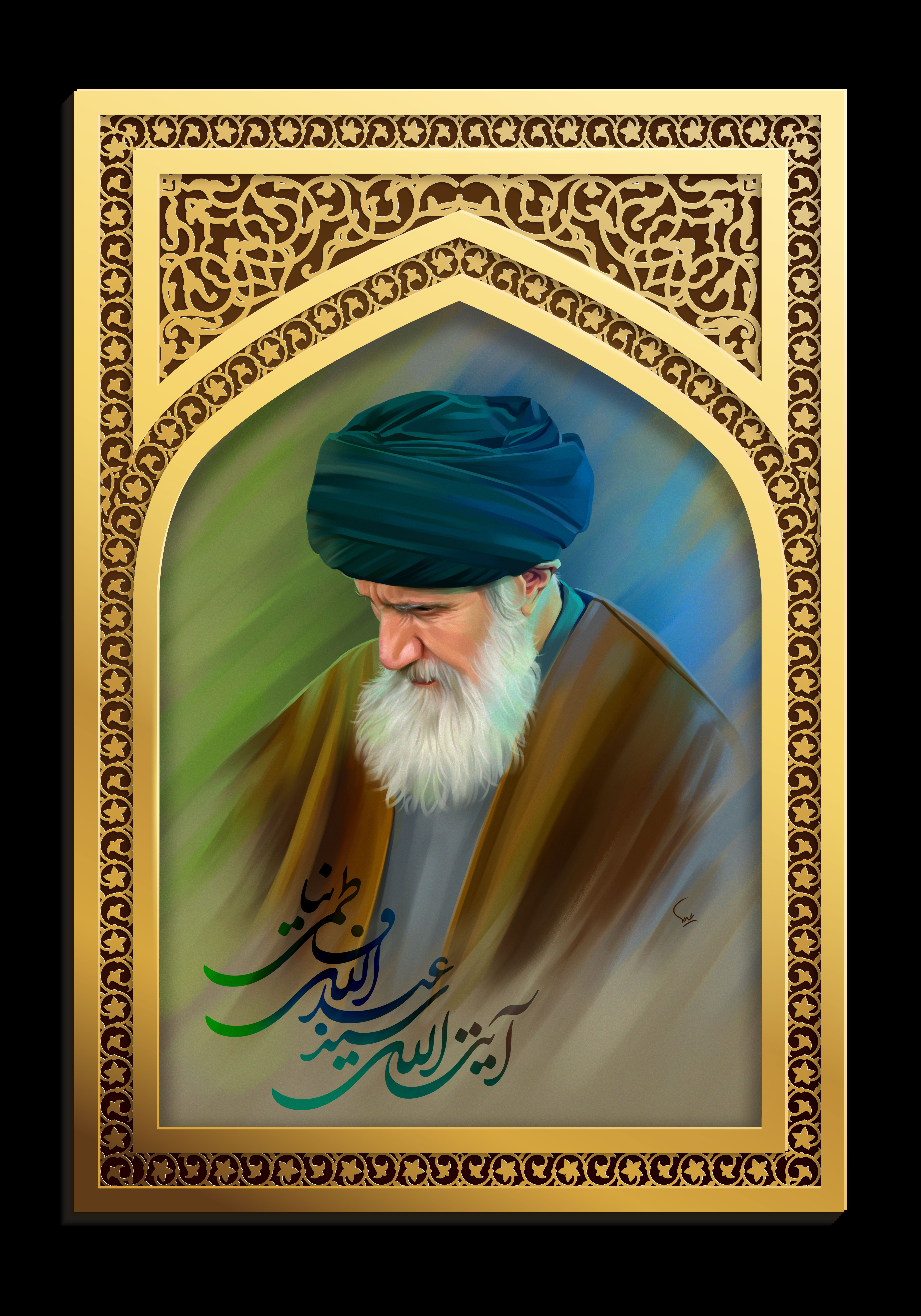 نقاشی چهره آیت الله فاطمی نیا توسط جناب آقای علی عسکری اجرا شده است.