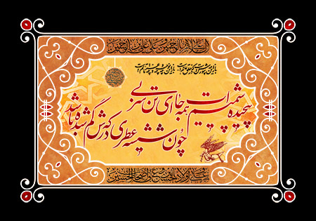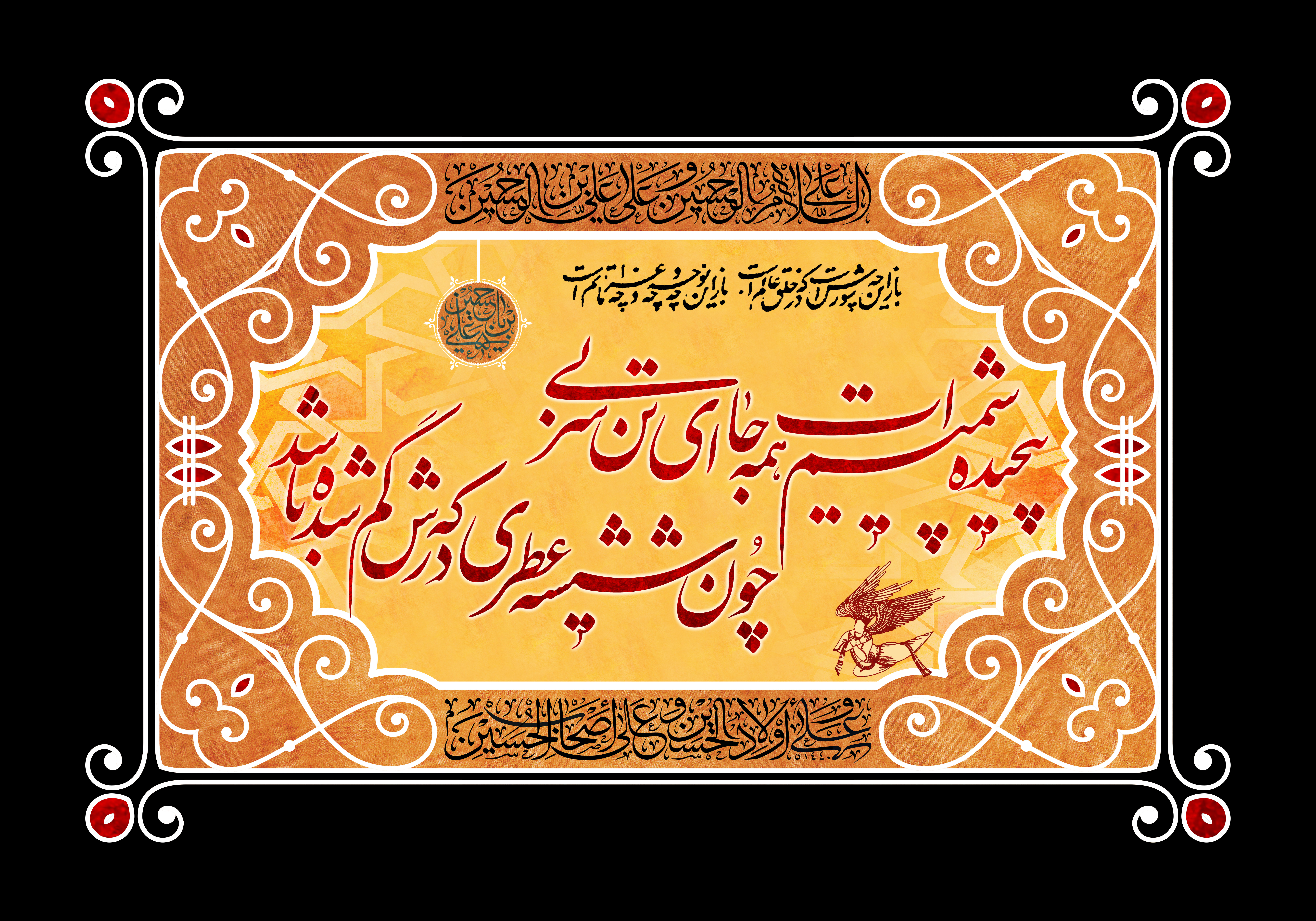 با بیت «پیچیده شمیم ات همه جا ای تن بی سر/ چون شیشه عطری که درش گم شده باشد» تصویری طراحی کردیم که امیدوارم از این تصویر بهره لازم رو ببرید و ما را از دعای خیرتان بهره مند بفرمایید. ان شاء الله تعالی