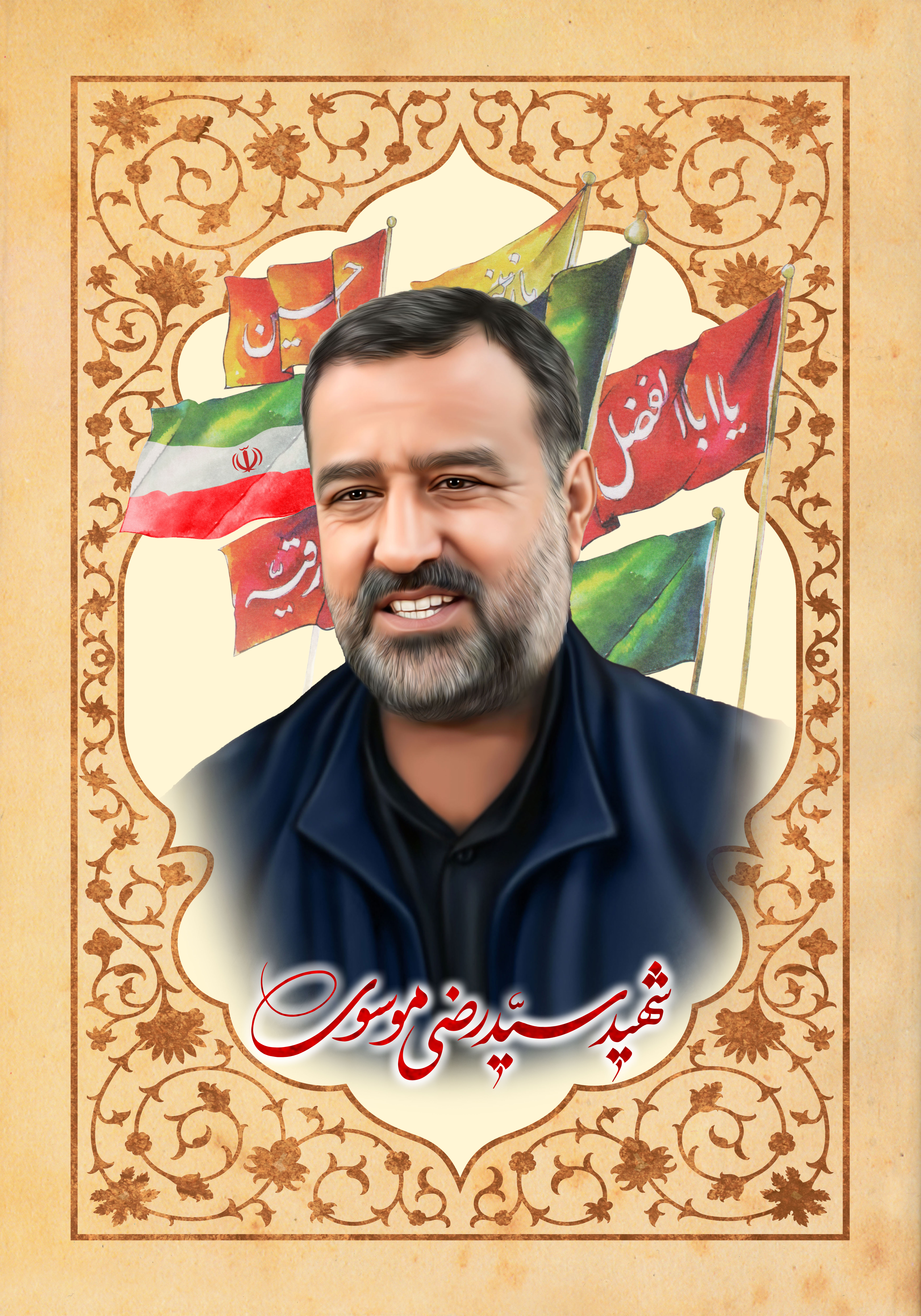 نقاشی چهره شهید موسوی توسط آقای سعید بهارلو اجرا شده است.