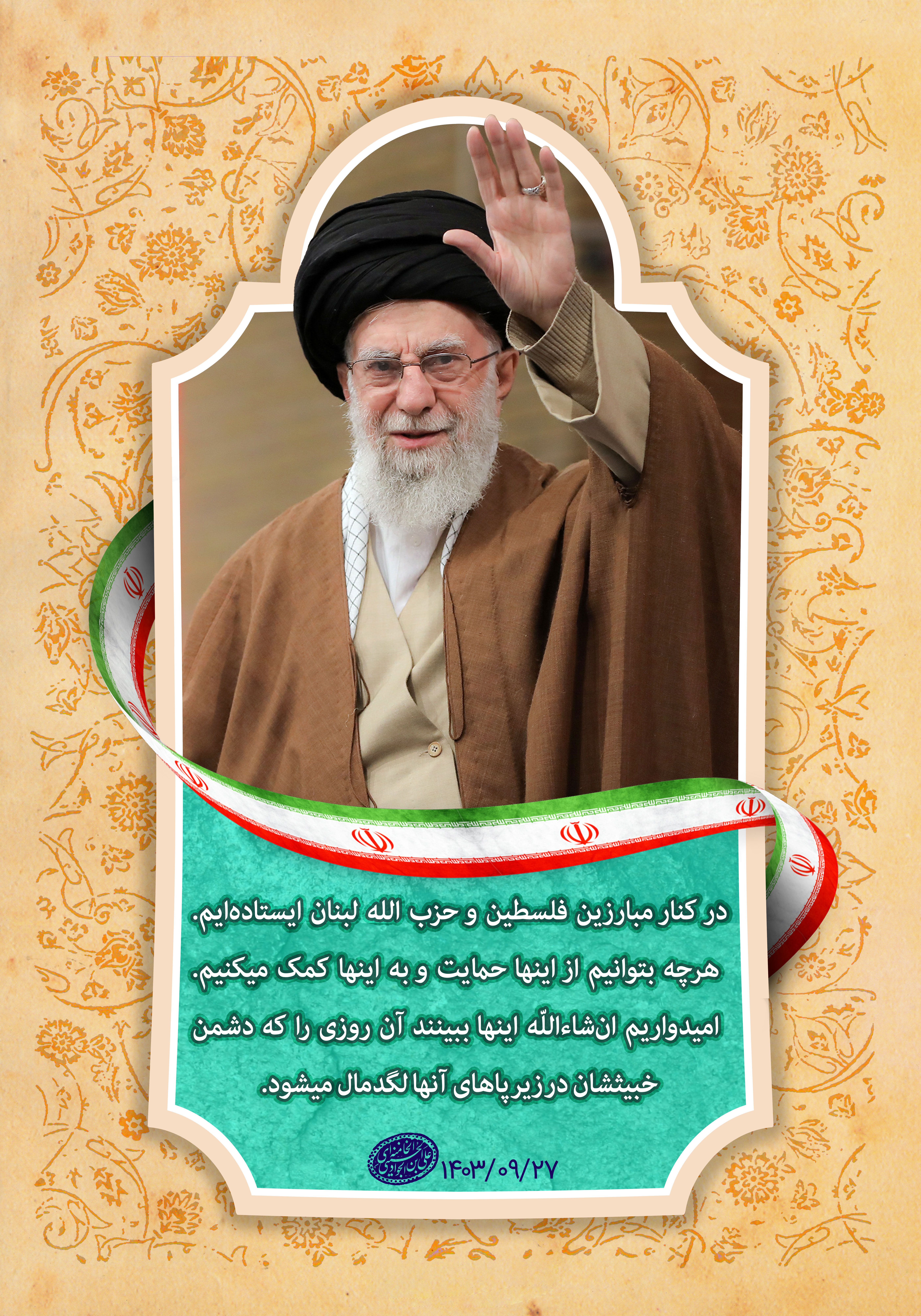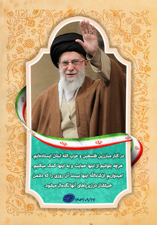 در کنار مبارزین فلسطین و حزب الله لبنان ایستادهایم. هرچه بتوانیم از اینها حمایت و به اینها کمک میکنیم. امیدواریم انشاءاللّه اینها ببینند آن روزی را که دشمن خبیثشان در زیر پاهای آنها لگدمال میشود.