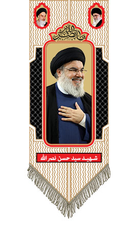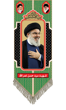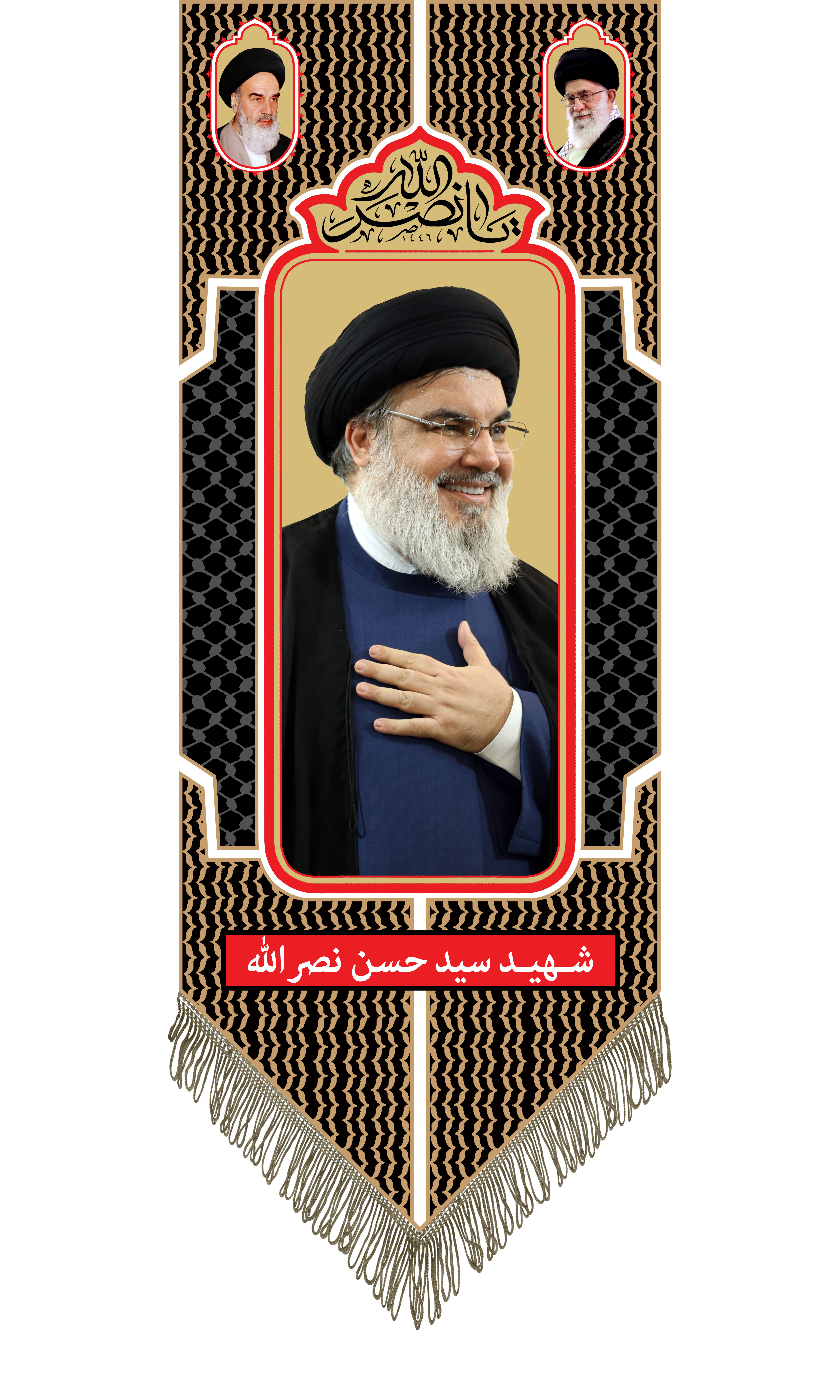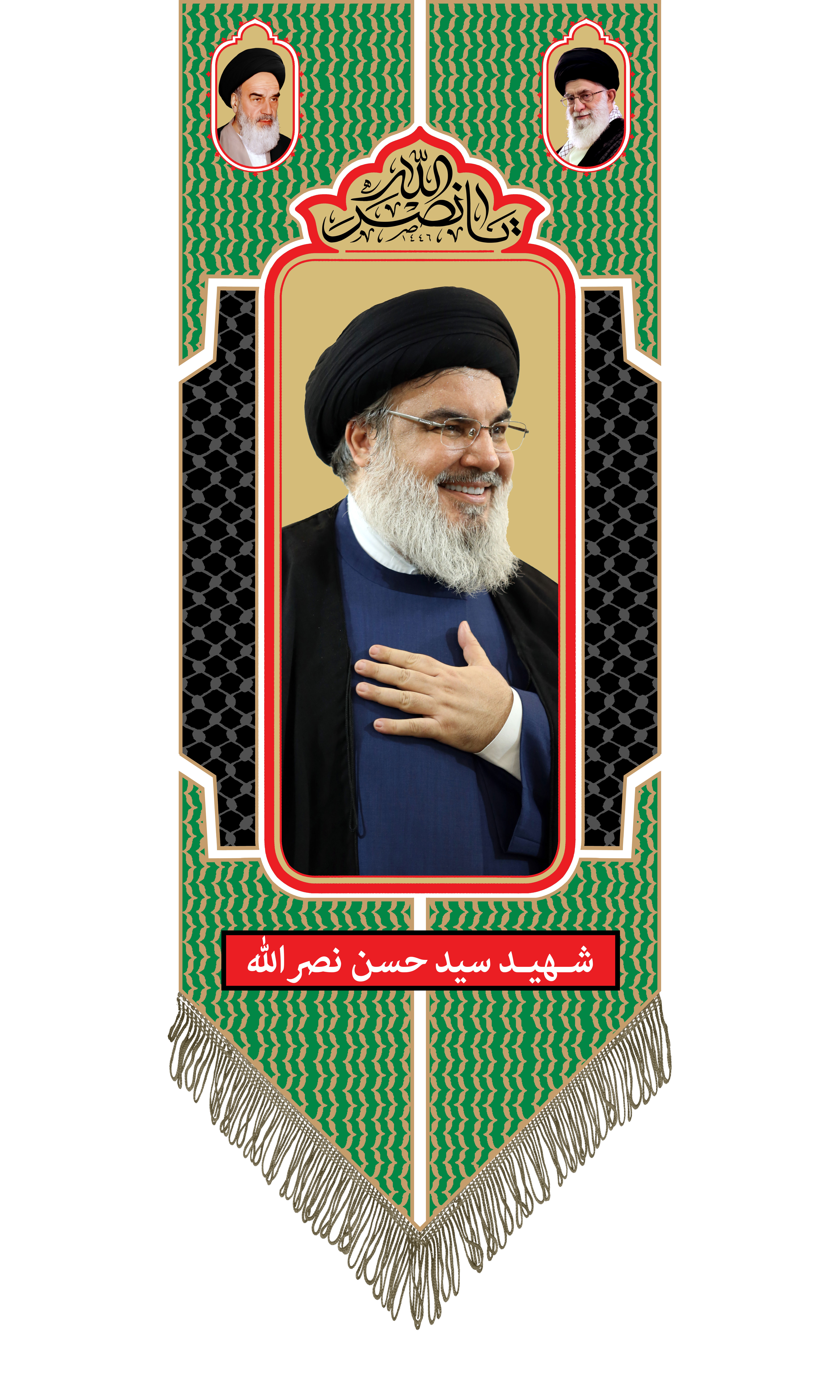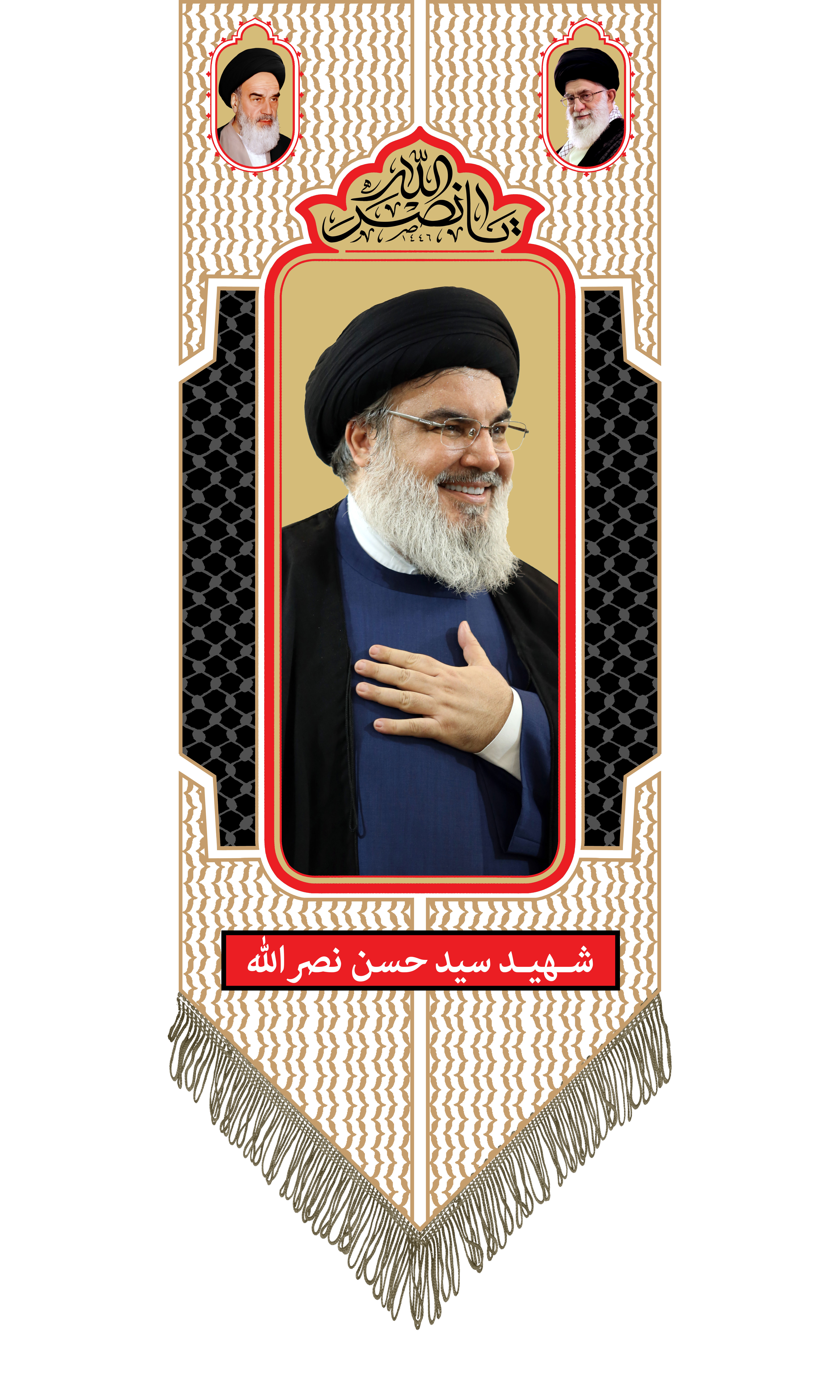 کتیبه امروز اختصاص دارد به تصویر شهید سید حسن نصرالله و مزین است به عبارت مبارک «یا نصرالله» و تصاویر امامین انقلاب.