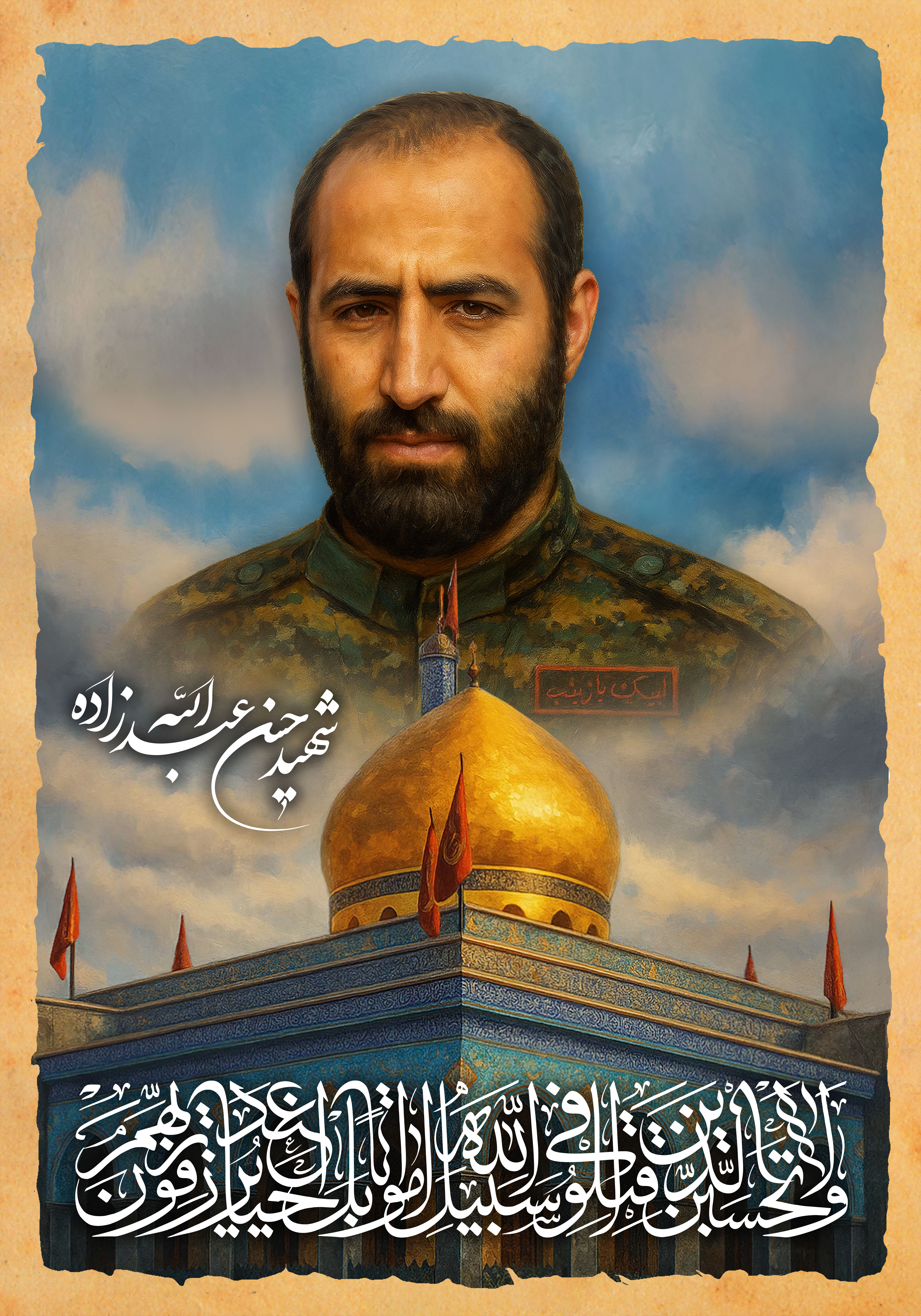 این تصویر به سبک نقاشی و با استفاده از نمایی از حرم حضرت زینب سلام الله علیها طراحی شده و امیدوارم شهید عبدالله زاده شفیع ما روز جزا باشد و با دعای شما خداوند متعال روزی ما را هم شهادت در راهش قرار دهد. ان شاء الله تعالی