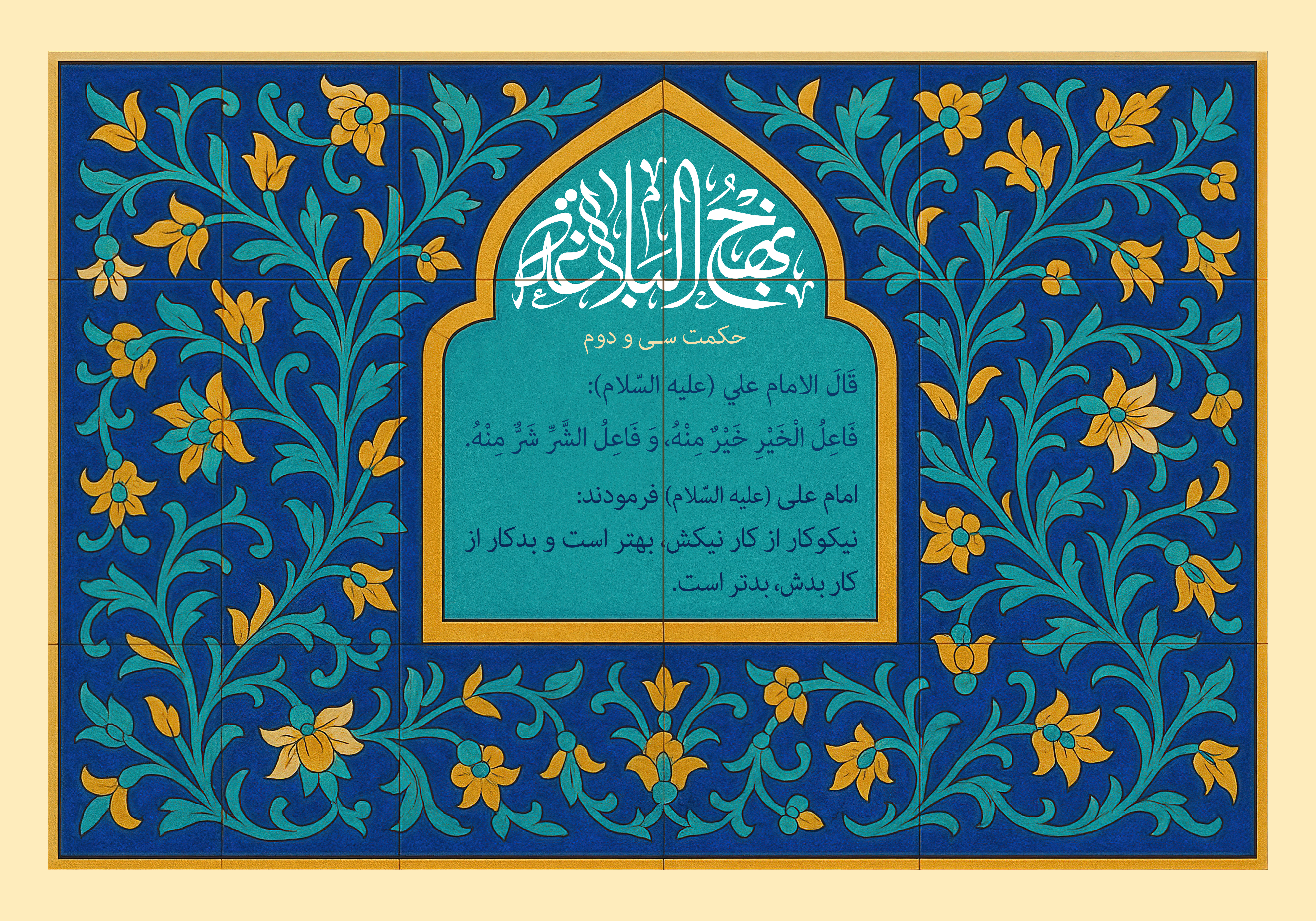 از مجموعه تصاویر «نهج البلاغه بخوانیم» تصویری مزین به حکمت سی و دوم نهج البلاغه خدمت شما تقدیم می کنم.