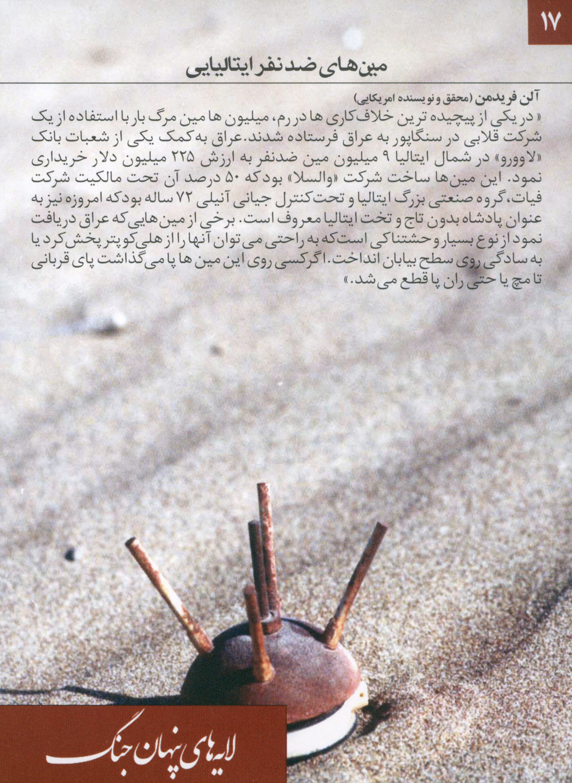 این مین ها ساخت شرکت والسل بود که ۵۰ درصد آن تحت مالکیت شرکت فیات، گروه صنعتی بزرگ ایتالیا و تحت کنترل جیانی آنیلی ۷۲ ساله بود که امروزه نیز به عنوان پادشاه بدون تاج و تخت ایتالیا معروف است. برخی از مین هایی که عراق دریافت نمود از نوع بسیار وحشتناکی است که به راحتی می توان آنها را از هلیکوپتر پخش کرد یا به سادگی روی سطح بیابان انداخت. اگر کسی روی این مین ها پا میگذاشت پای قربانی تا مچ یا حتی ران پا قطع میشد.
